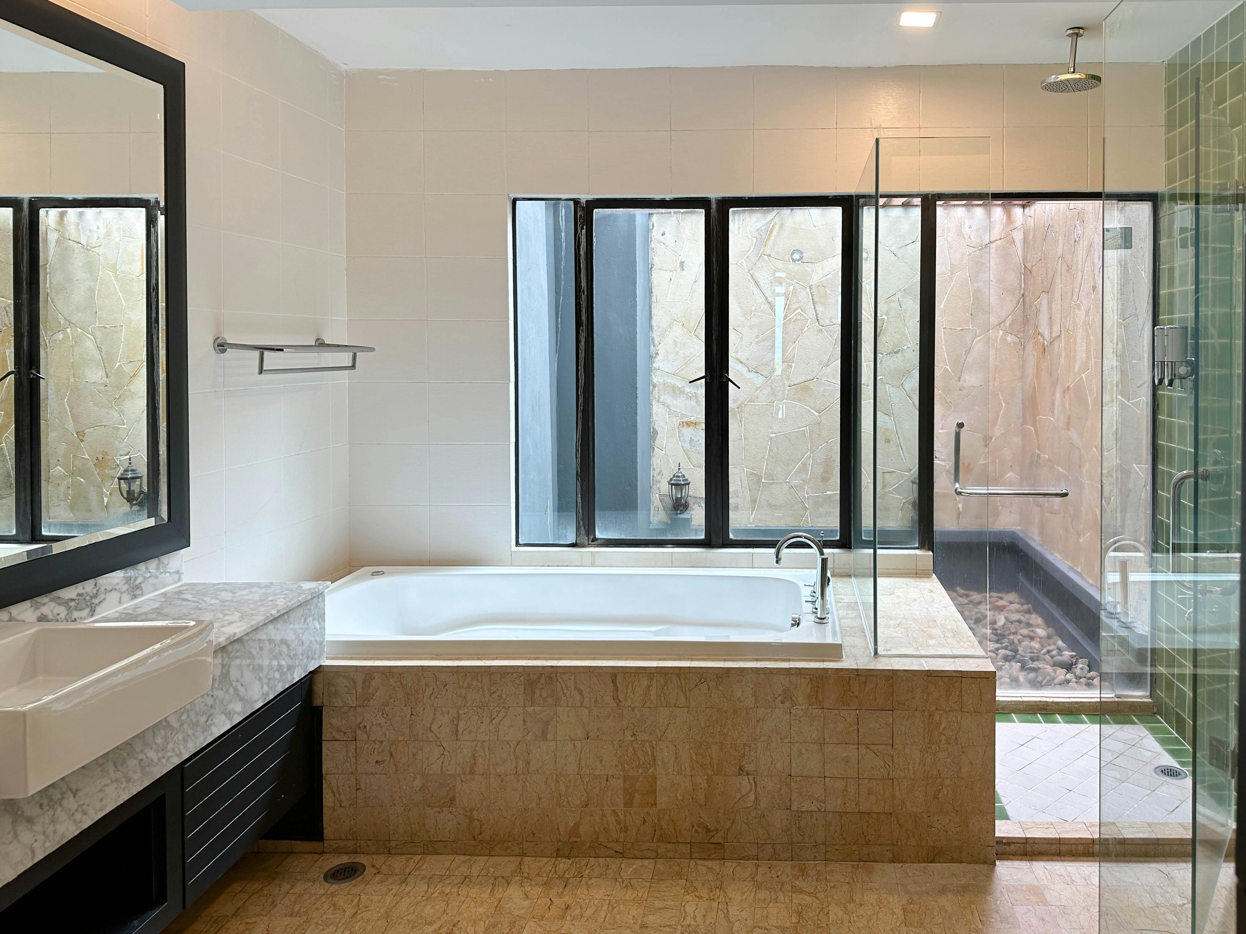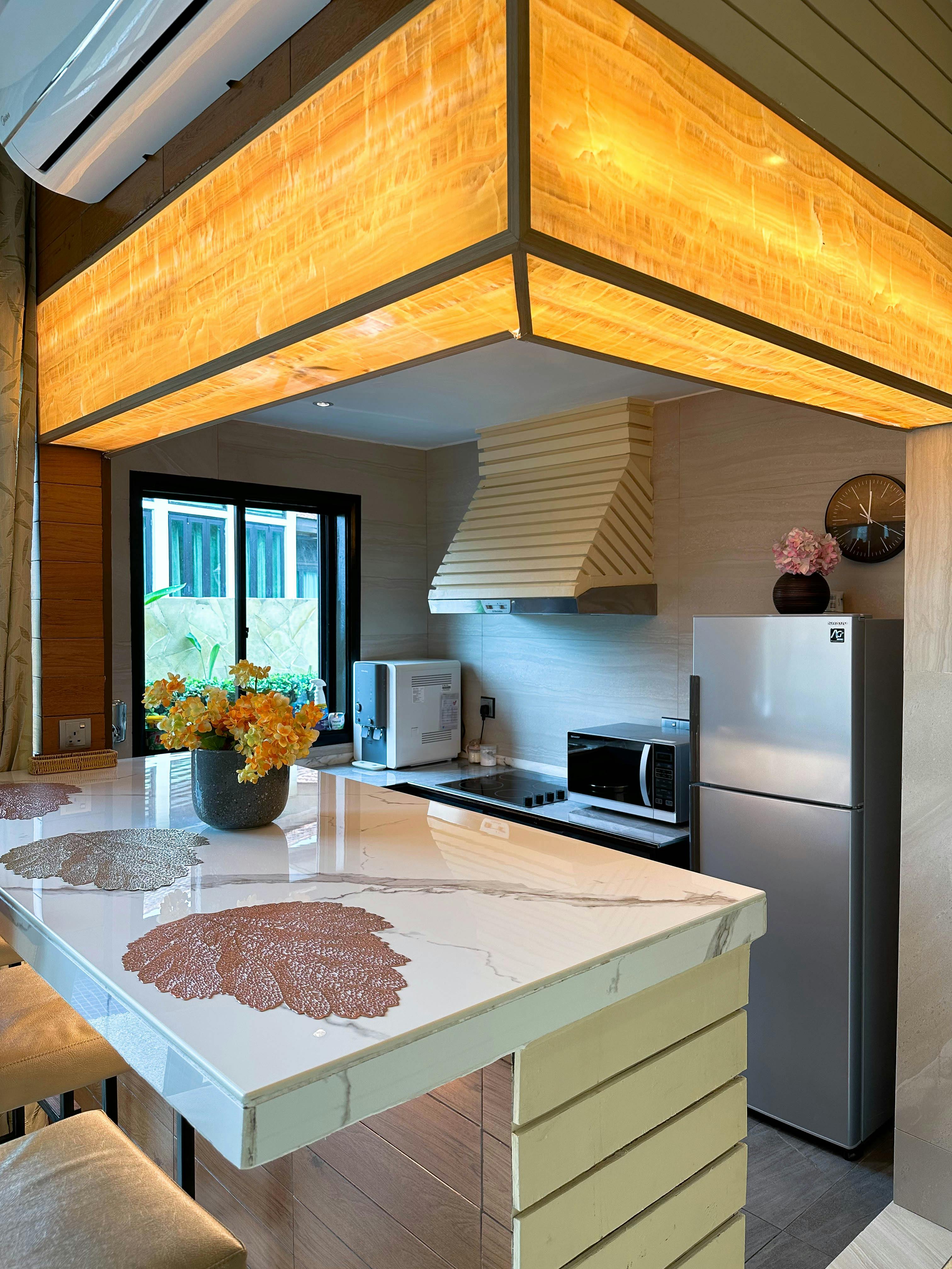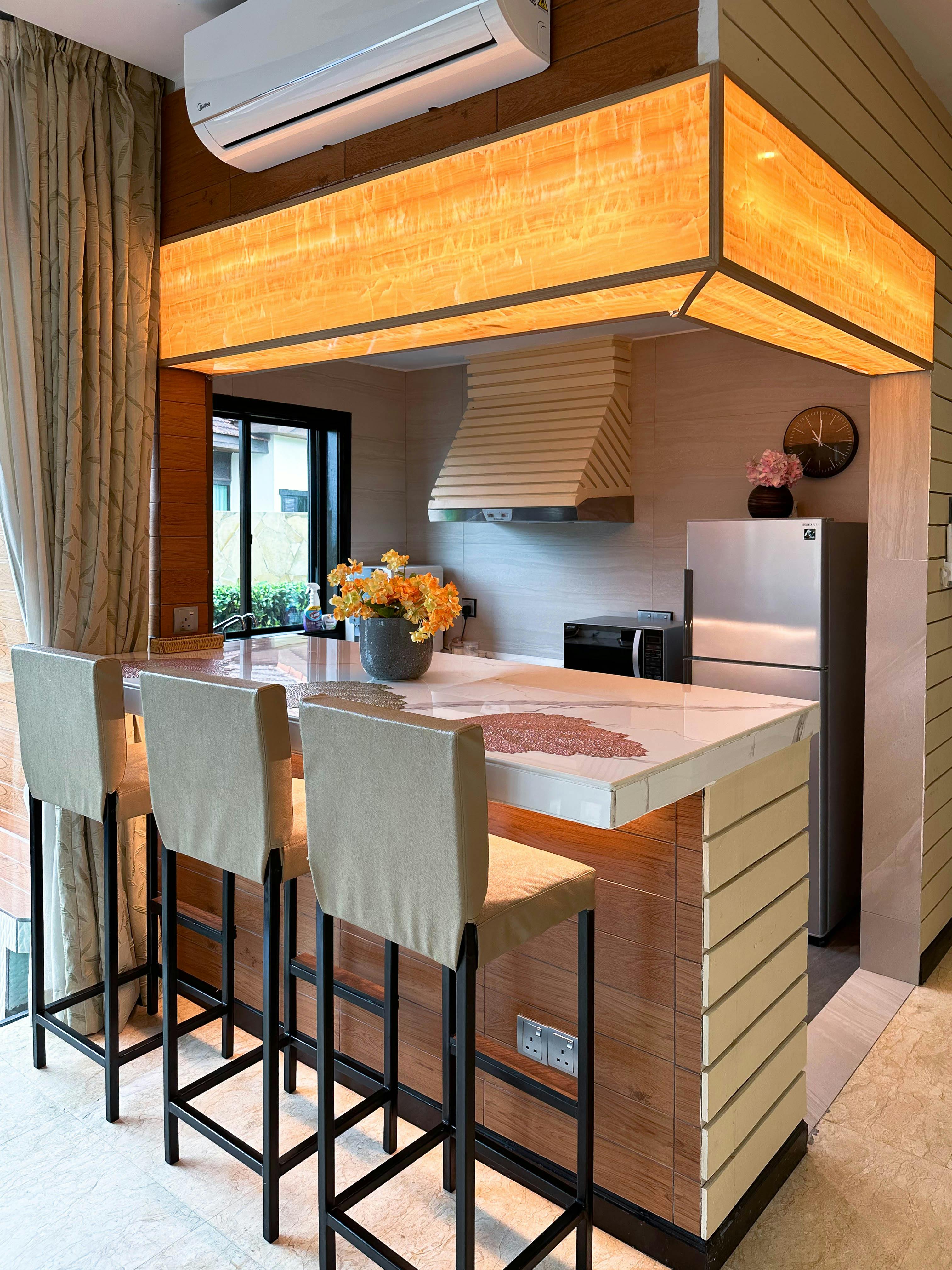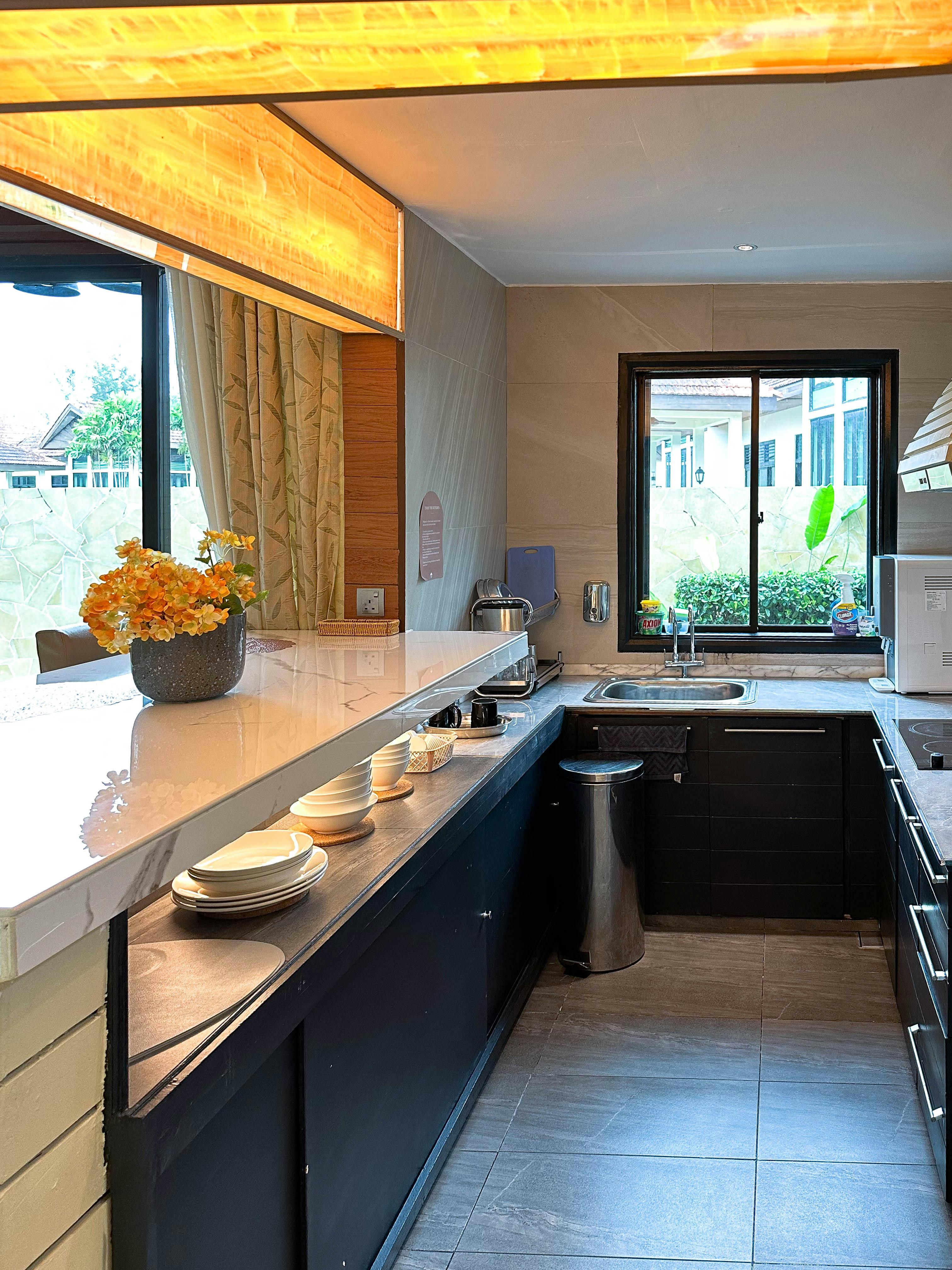 Offering panoramic views of the hill and oceans, the garden-view villa features spacious accommodation with a private swimming pool and a fully equipped kitchen. Free Wi-Fi and parking are provided. Fully furnished, the elegant villa comes with modern interiors and a double-height ceiling living room. The villa includes two spacious bedrooms, an ensuite bathroom with a Jacuzzi and private patios. Two 55-inch TVs, a wine cooler, and a water purifier are provided. The dining area, kitchen and villa all overlook the garden.